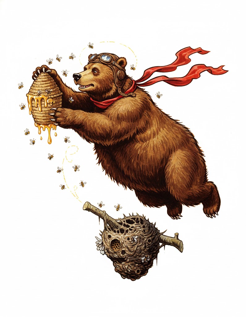 "Yes, he has to eat, doesn't he? Bears eat honey."